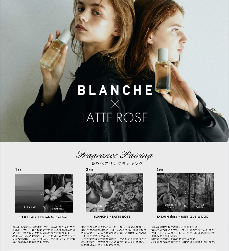 香りは共通。人気の香りはBLANCHE。どちらも香りが6時間以上持続する香水オイル。