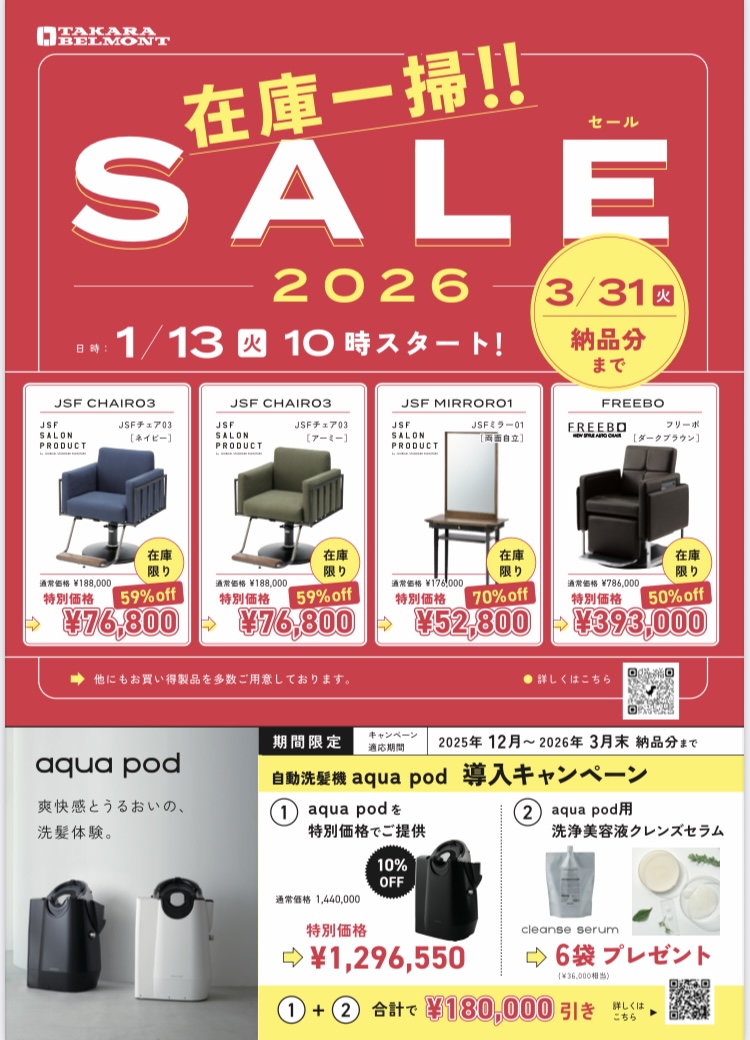 タカラベルモント在庫一掃!!SALE2026/1/13(火)10時スタート!
